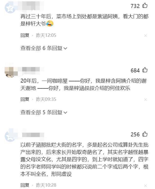 有网友开玩笑说如果在60年后,在大街上大喊一声:“子涵”,瞬间广场上跳舞的老奶奶,学校门口接孙子的大爷,估计几十个人都会疑惑的回头:“谁叫我呢?”